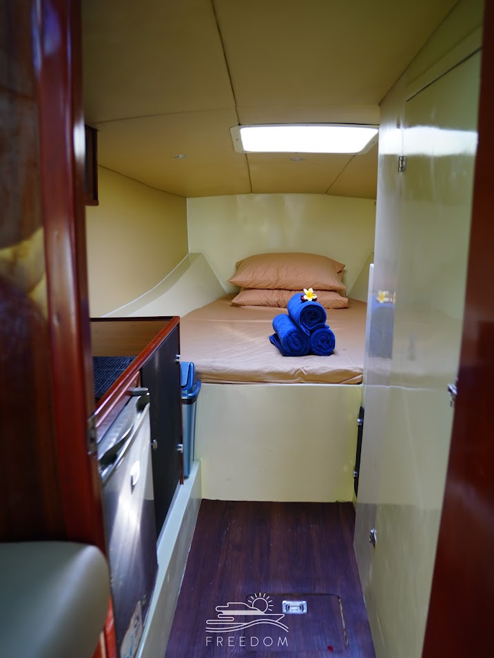 At 13 meters in length, the Freedom offers an intimate experience, perfect for a couple's getaway or a small group of friends of up to 10 people. Whether you're seeking a day of fishing, snorkeling, or a tranquil overnight charter, the Freedom promises an unforgettable adventure.