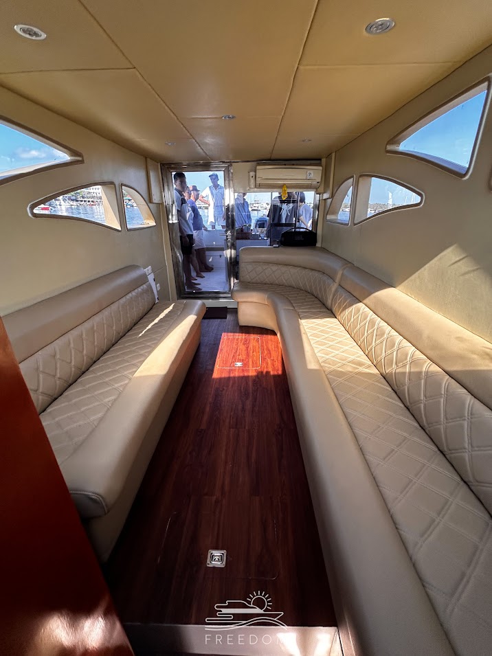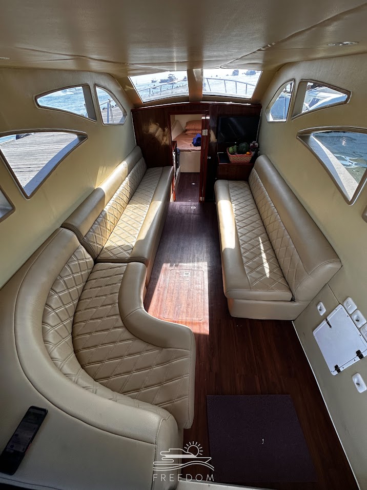 Introducing the "Freedom," a 13-meter marvel of nautical engineering designed for those seeking the ultimate aquatic experience. Powered by 2x 300HP engines, this sleek vessel ensures a thrilling and smooth journey through the waters. The Freedom offers a perfect blend of comfort and adventure, making it an ideal choice for those wanting to explore the seas in style.